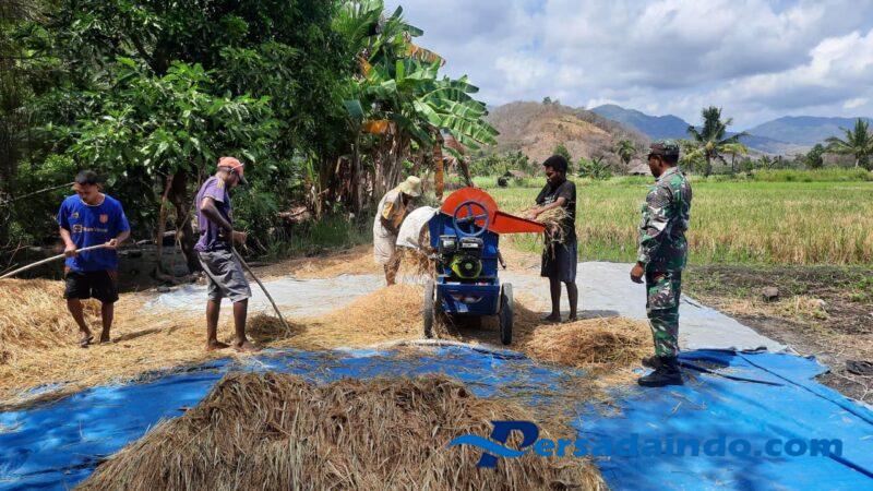Desa Air Mancur, Kecamatan Alor Timur Laut – Dalam upaya mendukung ketahanan pangan dan meningkatkan kesejahteraan masyarakat petani, Babinsa Desa Tanglapui Timur, Serka Tobias Madde, melaksanakan kegiatan Bakti TNI membantu perontokan padi milik warga di Desa Air Mancur pada Kamis, 13 November 2025, pukul 09.00 Wita.