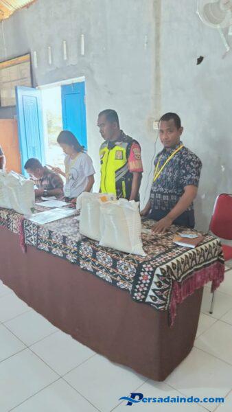 Rote Ndao – Babinsa Desa Oelua, Sertu Jose Timo, bersama Kepala Desa Oelua, melaksanakan pembagian bantuan pangan berupa beras bagi masyarakat penerima manfaat, Jumat (8/8/2025) di Kantor Desa Oelua, Kecamatan Loaholu, Kabupaten Rote Ndao.