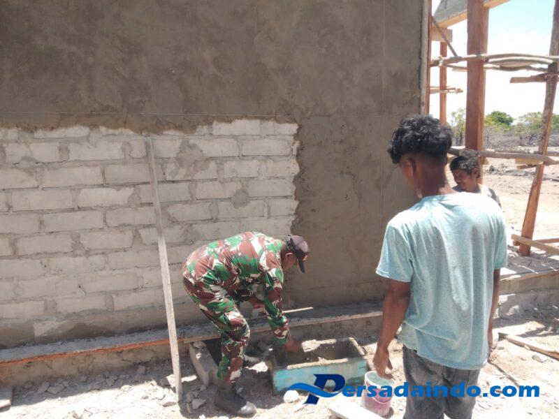 NTT – Sumba Timur. Babinsa Koramil 03/Pahunga Lodu jajaran Kodim 1601/Sumba Timur, Sertu Yohanes Saekoko melaksanakan kerjabakti Membantu Membangun Sekolah Dasar Inpres (SDI) Hanggaroru Desa Kaliuda ,Kecamatan Pahunga Lodu Kabupaten Sumba Timur, Rabu (15/10/2025)