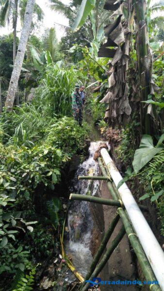 Disela peninjauannya, Babinsa Timuhun Serda Kadek Dwi Awan membenarkan adanya irigasi yang jebol di Subak Timuhun Tempekan Bukitai Dulu.