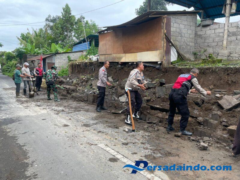 Proses pembersihan dilakukan secara manual, mengangkat bongkahan tembok yang jatuh serta mengeruk tanah yang menumpuk di tengah jalan. Kehadiran aparat keamanan dan desa memberikan dorongan moral bagi warga yang ikut serta, memperlihatkan hubungan yang erat antara masyarakat dan unsur keamanan wilayah.