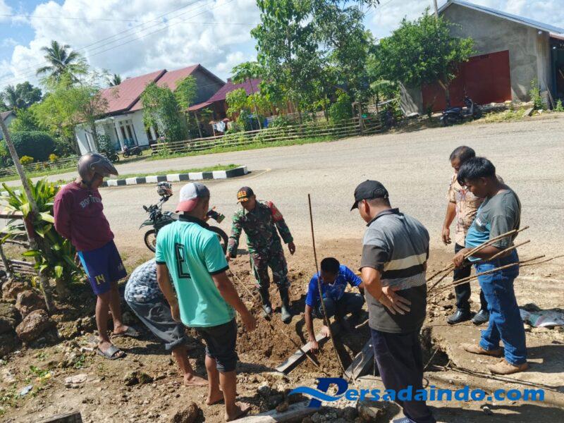 SUMBA TENGAH – Babinsa Koramil 03/Katikutana, Kodim 1613/Sumba Barat, Sertu Sukarman melaksanakan kegiatan membantu perbaikan deker yang mengalami kerusakan dan menghambat aliran air di Desa Wairasa, Kecamatan Umbu Ratu Nggay Barat, Kabupaten Sumba Tengah, Jumat (28/11/2025).