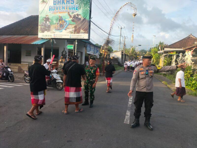 Untuk memastikan upacara berlangsung aman dan lancar, dirinya bersinergi bersama Bhabinkmtibmas dan pecalang turun langsung untuk memberikan pengamanan dan pengawalan.