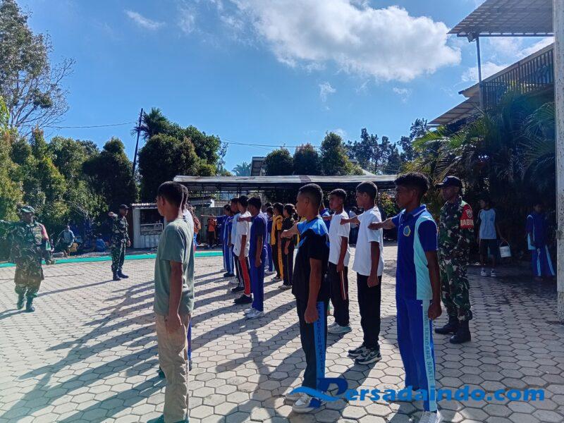 So’e – Pelda Yupiter A Tefi Bersama Tiga anggota Koramil 01/Kota So’e Kodim 1621 TTS Melaksanakan kegiatan pembekalan PBB kepada Siswa/Siswi SMK Kencana Sakti Haumeni Kec. Amaunaban Barat yang terpilih sebagai calon Paskibra Kecamatan Amanuban Barat dalam rangka persiapan HUT RI ke-80 Tahun 2025 yang bertempat fi halaman Sekolah SMK Kencana Sakti Kec. Amanuban Barat Kabupaten TTS. Jum’at (18/07/2025)