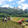 NTT – Sumba Timur. Kopka Umbu Parahi Babinsa Koramil 01/Lewa Kodim 1601/Sumba Timur, membantu kelompok Tani melaksanakan panen padi di Des...