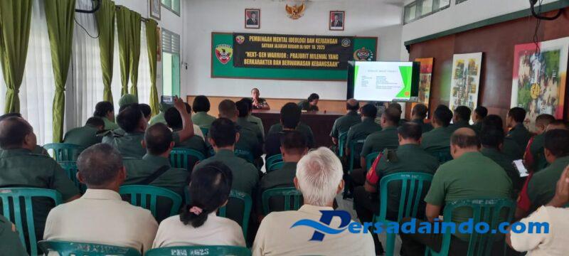 Sementara itu, penyampaian materi dari Kasi Talid Juang Bintal Jarahdam IX/Udayana Mayor Cku (k) Made Darini “Kita sekarang hidup di tengah globalisasi dengan perkembangan teknologi yang luar biasa, sehingga kita harus dapat mengambil sisi positifnya, Prajurit TNI harus berkarakter tangguh memiliki integritas disiplin dan ketahanan mental dalam segala situasi, berwawasan Kebangsaan memahami, mencintai dan menjaga nilai-nilai Pancasila serta keutuhan NKRI, adaptif dan inovatif siap menghadapi tantanganan teknologi dan dinamika global tahun 2025 serta mengantisipasi ancaman non konvensional, globalisasi dan perubahan teknologi” jelasnya.