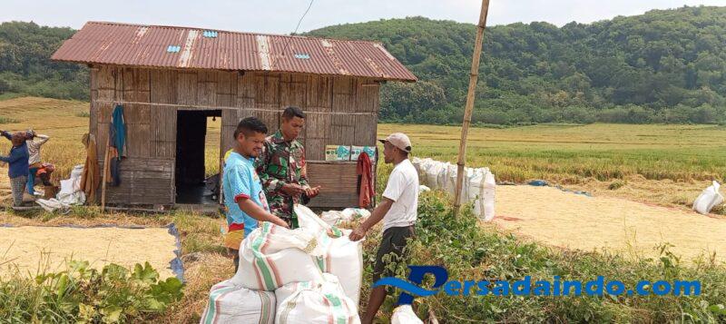 • Anggota Koramil 1612-06/Lembor Bantu Petani Jemur Padi di Dusun Golo Karot