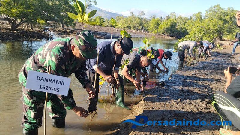 Danramil 1625-05/Aesesa, Letu Inf Adam Natal, menyampaikan bahwa keterlibatan TNI dalam kegiatan ini merupakan wujud kepedulian terhadap lingkungan hidup dan bentuk dukungan terhadap program pemerintah dalam menjaga kelestarian ekosistem mangrove.