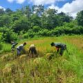 NTT- Sumba Timur, Babinsa Koramil 01/Lewa ,Kodim 1601/Sumba Timur,Kopka Umbu Parahi membantu warga binaan panen padi di Desa Matawai Amahu, Keca...