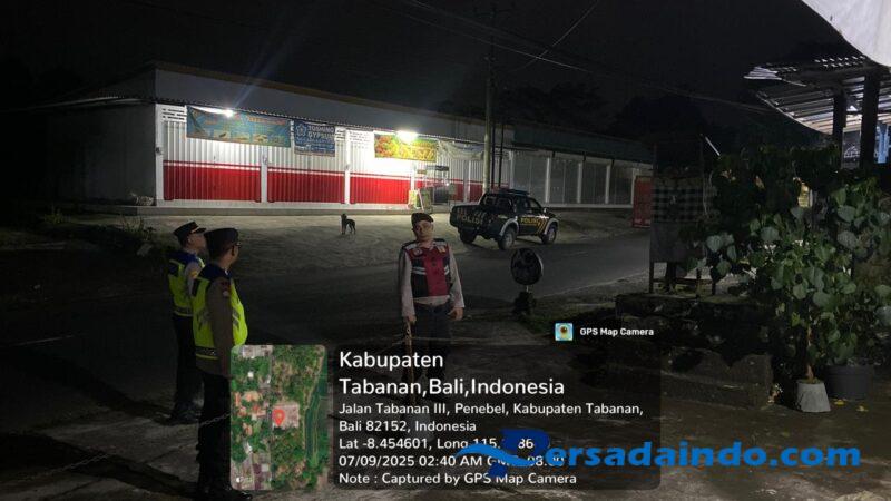 Polres Tabanan, Polsek Penebel Kamis10 Juli 2025 pkl 03.00 wita sampai dengan 05.00 wita Guna tetap mewujudkan sitkamtibmas di wilayah hukum Polsek Penebel agar tetap kondusif, Perwira Pengawas Polsek Penebel Ipda I Putu Rah Suamba memimpin personil piket fungsi melaksanakan patroli Subuh.