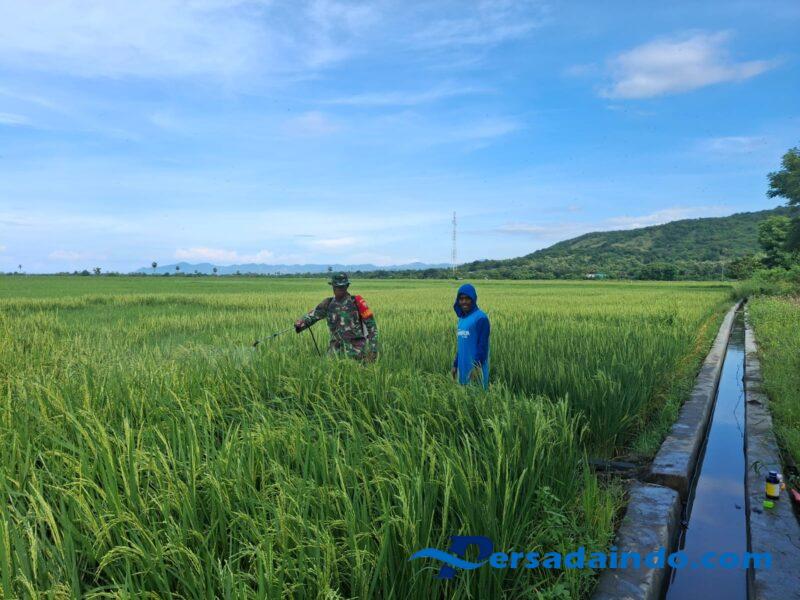 • Antisipasi Hama, Babinsa Koramil 03/Pahunga Lodu Bantu Petani Semprot Tanaman Padi