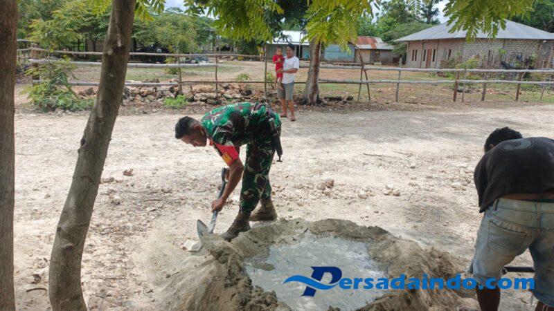 NTT-Sumba Timur,Babinsa Koramil 05/Waingapu Pos Ramil Haharu,Kodim 1601/Sumba Timur,melaksanakan kegiatan membantu masyarakat dalam pembangunan bak penampung air bersih di Desa Napu, Kecamatan Haharu, Kabupaten Sumba Timur,pada Jumat (28/11/2025).