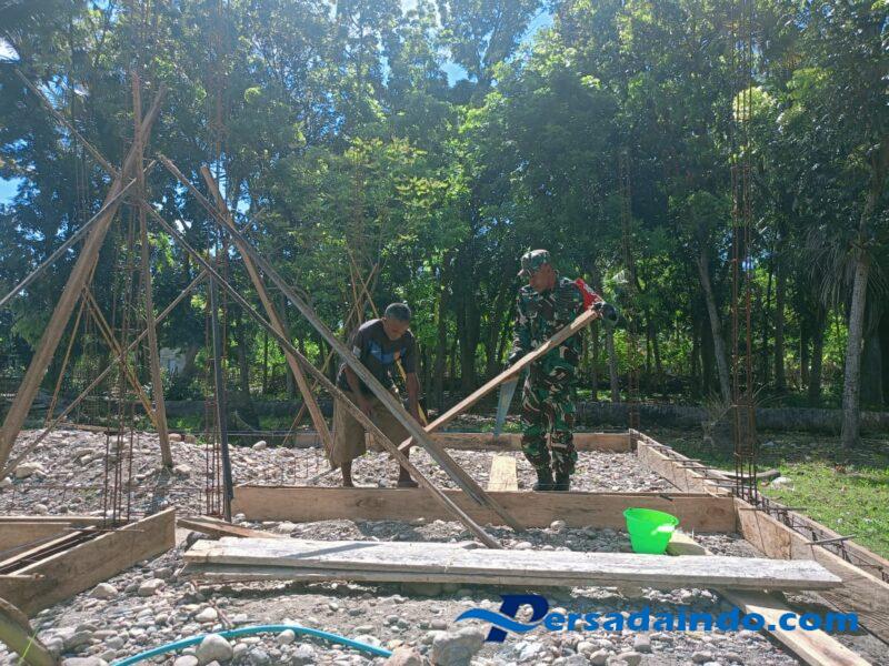 Seperti halnya yang dilakukan Babinsa Desa Lasaen Koramil 1605-09/Biudukfoho Serda Melfri Nanusella membantu dalam proses pengerjaan pembangunan rumah warga di Dusun Lasaen, Desa Lasaen, Kecamatan Malaka Barat, Kabupaten Malaka, Sabtu (23/8/2025).