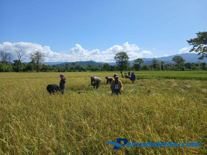 NTT – Sumba Timur,Babinsa Koramil 06/Karera, Kodim 1601/Sumba Timur Pratu Aldi Kore, melaksanakan kegiatan monitoring sekaligus panen padi di lahan milik Bapak Risal yang terletak di Dusun Kahambi, Desa Praimadita, Kecamatan Karera. Kabupaten Sumba Timur,Rabu (14/05/2025).
