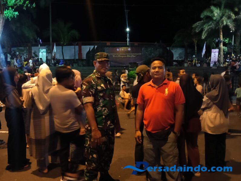 Babinsa Kelurahan Padangkerta Koramil 1623-01/Karangasem Peltu I Wayan Sumadra melaksanakan pengamanan kegiatan Karangasem akhir pekan, di Taman Jagatkarana Jln. Veteran Amlapura, Kel.Padangkerta, Kec/Kab.Karangasem, pada Sabtu malam (24/05/25).