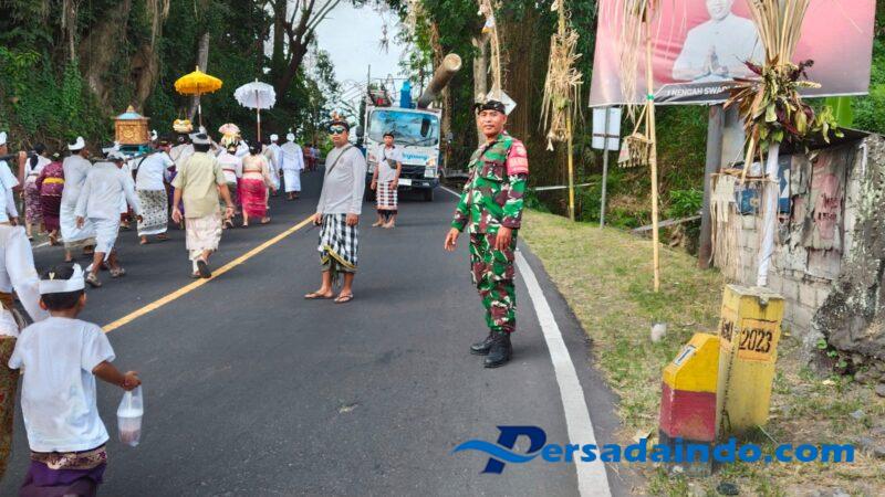 Babinsa Peltu I Wayan Sumadra disela-sela kegiatan pengamanan mengatakan “kehadiran Babinsa dalam membantu pengamanan upacara keagamaan di masyarakat merupakan wujud kemanunggalan TNI rakyat” ujarnya.