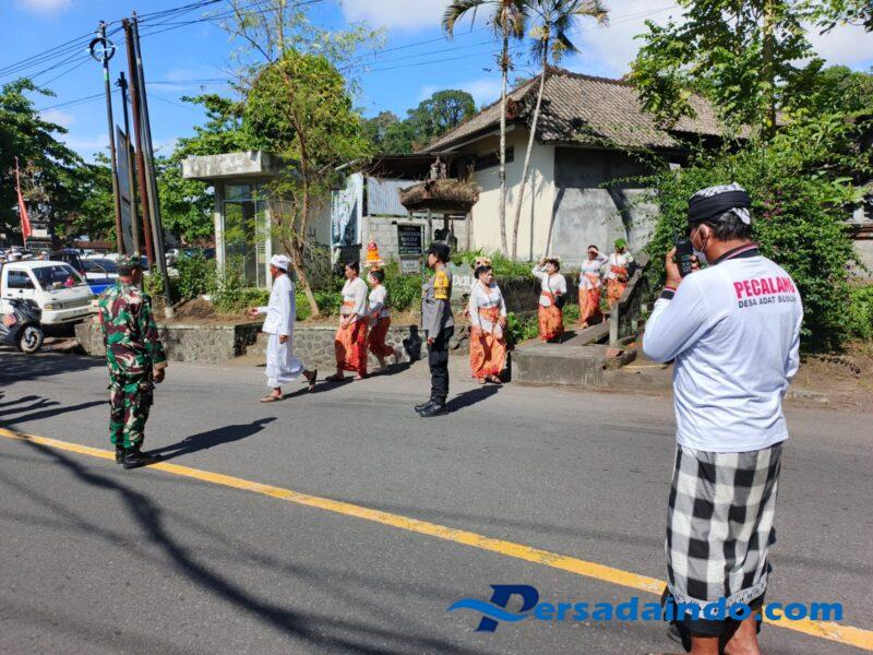 Babinsa Serda I Nyoman Sumantra mengungkapkan “kami bersama Bhabinkamtibmas dan Pecalang Desa Adat Susuan bersinergi melaksanakan pengamanan upacara Melasti, ucapnya.