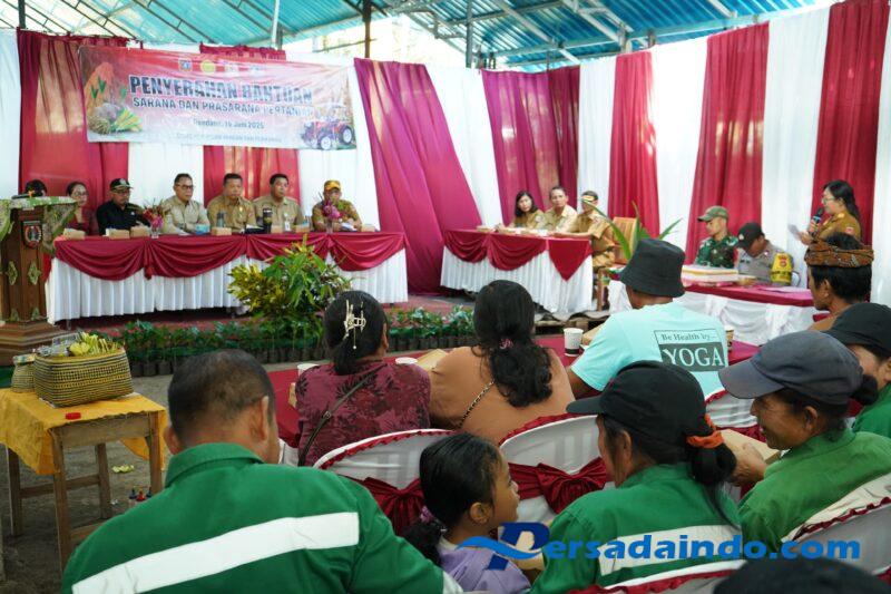 Babinsa Desa Menanga Koramil 1623-03/Rendang Serda I Gusti Lanang Mantra Antaryana menghadiri kegiatan penyerahan bantuan sarana dan prasarana pertanian oleh Dinas Pertanian dan Ketahanan pangan Prov Bali di Banjar Dinas Belatung Desa Menanga Kec.Rendang Kab.Karangasem, pada Senin (16/06/25).