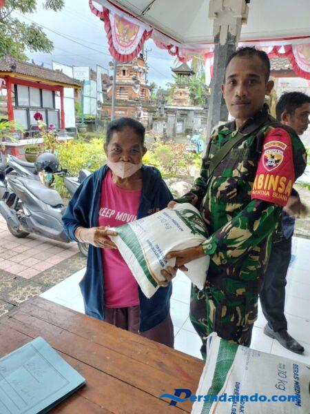 KARANGASEM – Babinsa Desa Kertha Buana Koramil 1623-04/Sidemen Sertu I Wayan Widana melaksanakan monitoring sekaligus pengamanan kegiatan pembagian bantuan beras cadangan pangan pemerintah (CPP), di Kantor Desa Kertha Buana, Kec.Selat, Kab.Karangasem, pada Selasa (29/07/25).