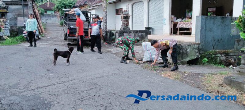 Babinsa Desa Talibeng Koramil 1623-04/Sidemen Koptu I Dewa Gede Eka Dwipayana menghadiri kegiatan gotong royong, di Desa Adat Delod Yeh Kangin Desa Talibeng Kec.Seidemen Kab. Karangasem, pada Jumat (09/05/25).