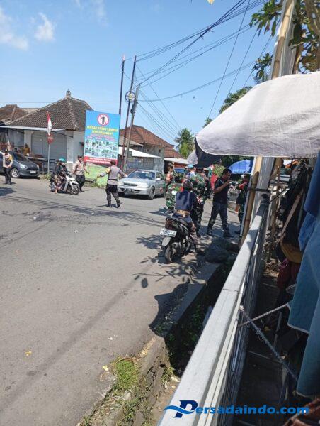 Tampak pada gambar anggota TNI (Babinsa) bersinergi melaksanakan pengamanan dan pengaturan lalin.