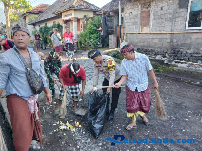 Babinsa Desa Bebandem Sertu I Kadek Yulantara disela-sela kegiatan mengatakan “kami turut mengikuti kegiatan gotong royong pembersihan sampah di areal Pure Puseh Kastala dan pembersihan sampah Plastik di sepanjang jalan menuju permandian umum dan TPA” ujarnya