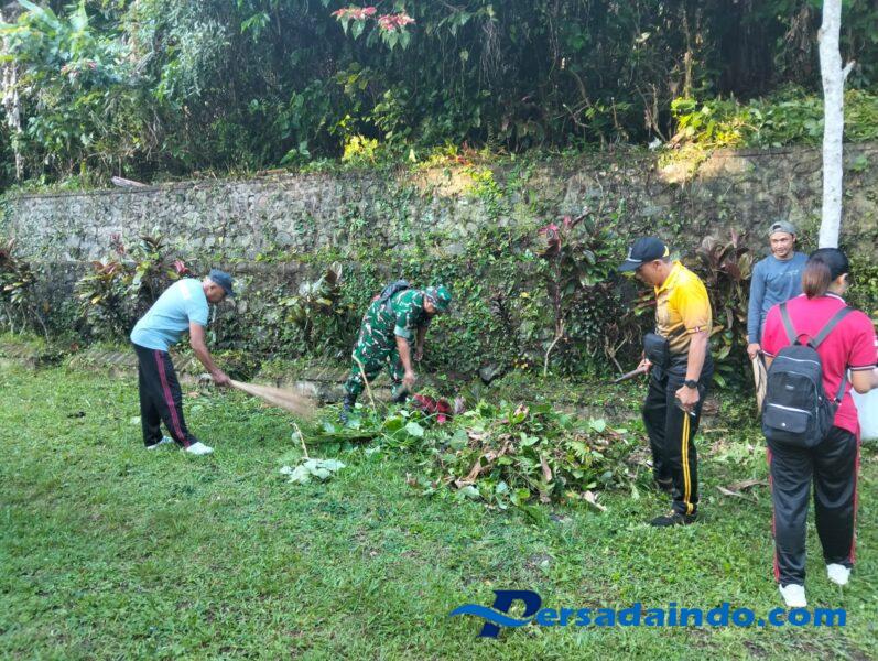 Babinsa Desa Macang Koramil 1623-07/Bebandem Pelda I Gede Bagia Oka Mahendra menghadiri kegiatan Bulan Bakti Gotong Royong Masyarakat (BBGRM), di Pura Batu Madeg Desa Adat Macang Kecamatan Bebandem Kabupaten Karangasem, pada Jumat (16/05/25).