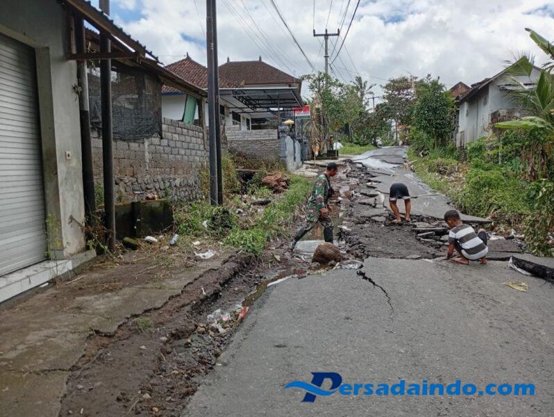 Babinsa Desa Bebandem Sertu I Kadek Yulantara mengungkapkan “banyaknya tumpukan sampah di dalam got menyebabkan air meluap ke badan jalan, saking derasnya hujan sampai menggerus badan jalan hingga rusak berat” ujarnya.