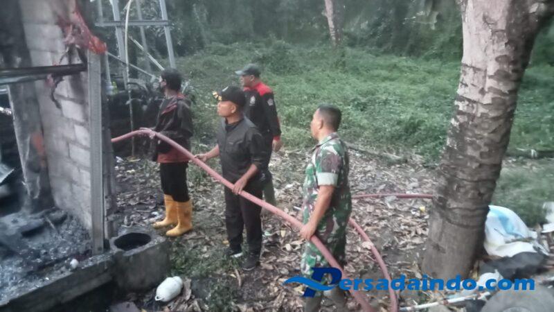Babinsa Desa Tianyar Barat Koramil 1623-08/Kubu Serma I Wayan Arya membantu memadamkan api yang membakar kandang ayam dengan Luas Bangunan 12 x 70 m dengan Kapasitas : 24 ribu ayam usia 8 hari milik Warga binaan, di Dsn Tegal Sari, Ds.Tianyar Barat, Kec.Kubu, Kab.Karangasem, Sabtu (21/06/25)