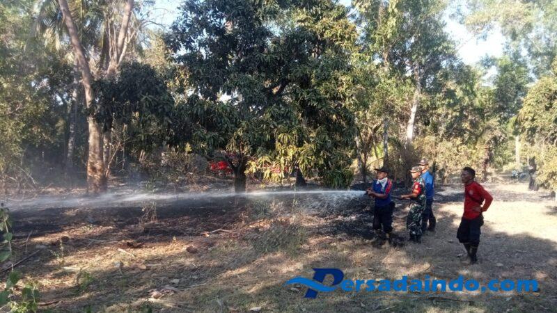 KARANGASEM – Babinsa Koramil 1623-08/Kubu Desa Tianyar Tengah Serka I Nyoman Rauh membantu proses pemadaman kebakaran lahan di Dusun Munti Desa Timur, Desa Tianyar Tengah, Kec. Kubu, Kabupaten Karangasem pada Jumat (10/10/2025)