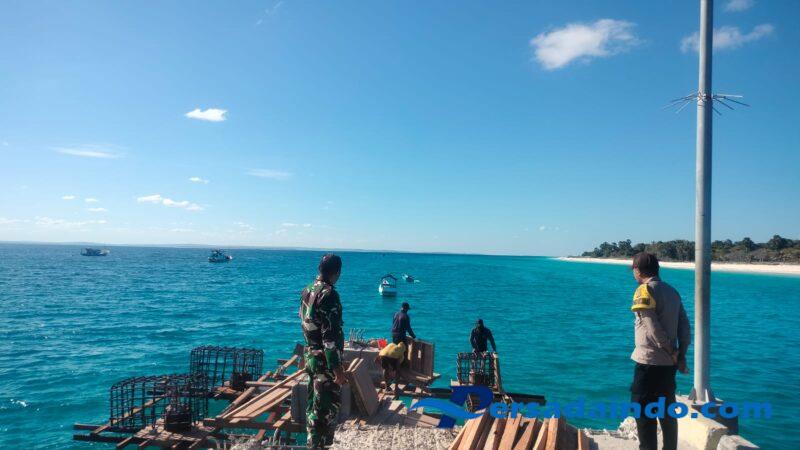 Rote Ndao — Guna memastikan kelancaran proses perbaikan fasilitas umum, Babinsa Koramil 1627-03/Batutua Serda Demsi Taek bersama Bhabinkamtibmas melaksanakan kegiatan komunikasi sosial (komsos) dan monitoring perbaikan pelabuhan kapal ferry yang berada di Desa Oli, Kecamatan Ndao Nuse, Kabupaten Rote Ndao, pada Senin, 14 Juli 2025 pukul 11.30 WITA.
