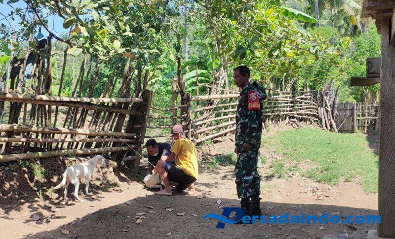 Sumbawa Barat, NTB – Anggota Koramil 1628-03/Seteluk, Kodim 1628/Sumbawa Barat Babinsa Desa Klanir Sertu Ashar melaksanakan pendampingan terhadap Tim Vaksinasi dari Dinas Pertanian Perkebunan, Peternakan Pusat dan Kesehatan Hewan, Kecamatan Seteluk.
