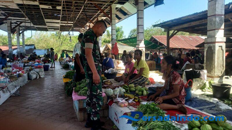 Dalam kegiatan tersebut, Babinsa memantau secara langsung aktivitas jual beli masyarakat serta memastikan kondisi pasar tetap aman dan tertib. Selain itu, Pratu Hezron juga memberikan imbauan kepada para pengunjung dan pedagang agar selalu menjaga keamanan, ketertiban, dan kebersihan lingkungan pasar, sehingga kegiatan ekonomi masyarakat dapat berjalan dengan nyaman.