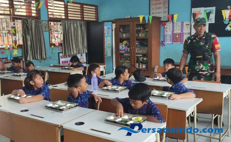Babinsa Kelurahan Kesiman, memastikan bahwa kegiatan ini berjalan lancar dan paket makanan bergizi gratis dapat diterima oleh siswa-siswi yang berhak.