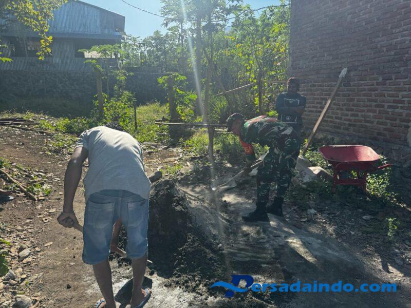 Flotim – Guna terciptanya sinergitas dan kemanunggalan TNI bersama Rakyat, Babinsa Koramil 1624-02/Adonara Pratu Halarius Tanjong Siong melaksanakan karya bakti. Bentuk kegiatan membantu pembuatan pondasi pembangunan rumah milik warga binaan di Desa Kolimasang, Kecamatan Adonara, Kabupaten Flotim, Selasa (10/06/2025).