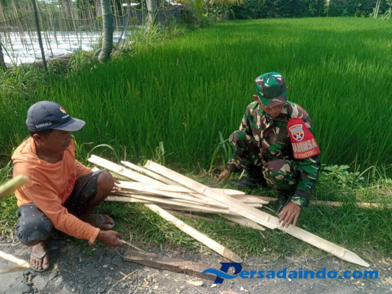 Lombok Tengah – Dalam upaya mencegah serangan binatang liar yang kerap merusak tanaman petani, Babinsa Serka Ahmad Salim turun langsung membantu warga binaan membuat pagar bambu di lahan pertanian didusun Bore, desa Berinding, Kecamatan Kopang, Lombok Tengah, Senin (14/7/2025).