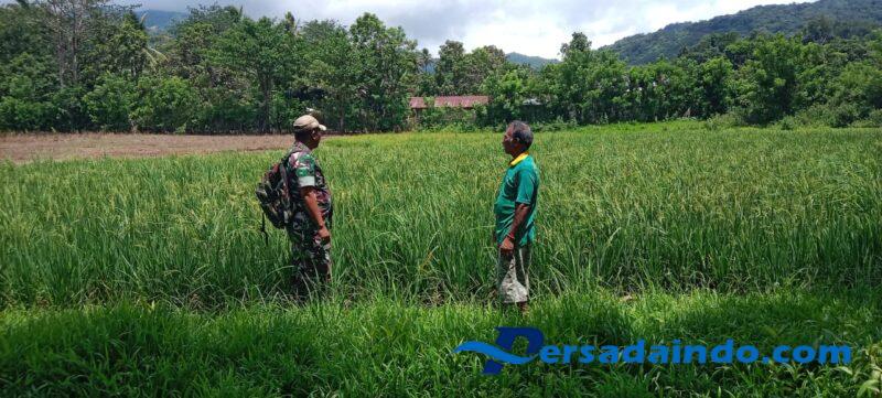 NTT-Sumba Timur,Dalam rangka mendukung program ketahanan pangan nasional, Babinsa Koramil 04/Tabundung,Kodim 1601/Sumba Timur,Sertu Ejiman, melaksanakan kegiatan pendampingan Hanpangan (Ketahanan Pangan) di lahan sawah milik Bapak Dominggus yang berlokasi di Desa Praingkareha, Kecamatan Tabundung, Kabupaten Sumba Timur pada hari Rabu (12/11/2025).