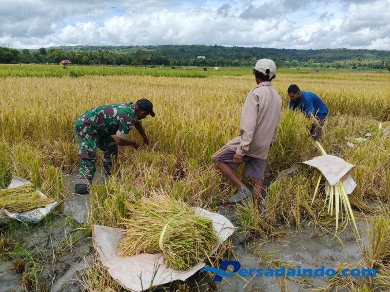 NTT-Kefamenanu, Senin 16 Juni 2025, Walaupun kaki penuh dengan lumpur dan terik matahari menyengat, Sebagai bentuk kepedulian dan dukungan langsung terhadap Masyarakat Desa binaannya, Sertu Cosme Cortereal Babinsa Koramil 1618-05/Biut, Turut serta membantu Petani dalam kegiatan panen padi milik Bapak Blasius Humuen, di wilayah binaan, Rt. 05, Rw. 03, Desa Oepuah Utara, Kec. Biboki Moenleu, Kab. TTU.