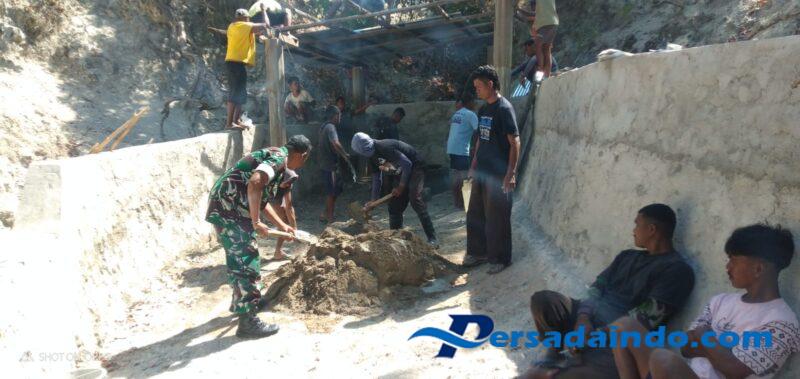 Rote Ndao – Wujud kepedulian terhadap masyarakat di wilayah teritorial, Serda Rony Riberu Babinsa Koramil 1627-02/Pantai Baru melaksanakan kegiatan gotong royong bersama warganya campur semen untuk membangun lantai Sumur di Desa Fatelilo Kecamatan Pantai Baru Kabupaten Rote Ndao, Selasa (19/8/2025).