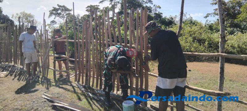NTT Rote Ndao Koptu Meli Sudarli Babinsa Koramil 03/Batutua Kodim 1627/Rote Ndao, bantu Warga perbaikan pagar rumah,Desa Helebeik Kecamatan Lobalain Kabupten Rote Ndao.