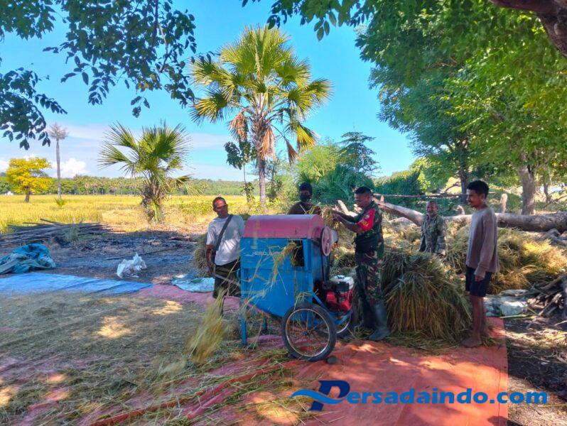 NTT-OEPOLI, Dalam upaya mendukung ketahanan pangan di wilayah perbatasan RI-RDTL, Babinsa Netemnanu Selatan Koramil 1604-03/Naikliu Sertu Jella Bing turun langsung membantu masyarakat merontok padi hasil panen. Kegiatan ini dilaksanakan di Dusun 2, Desa Netemnanu Selatan, Kecamatan Amfoang Timur, Kabupaten Kupang. Rabu (11/06/2025).