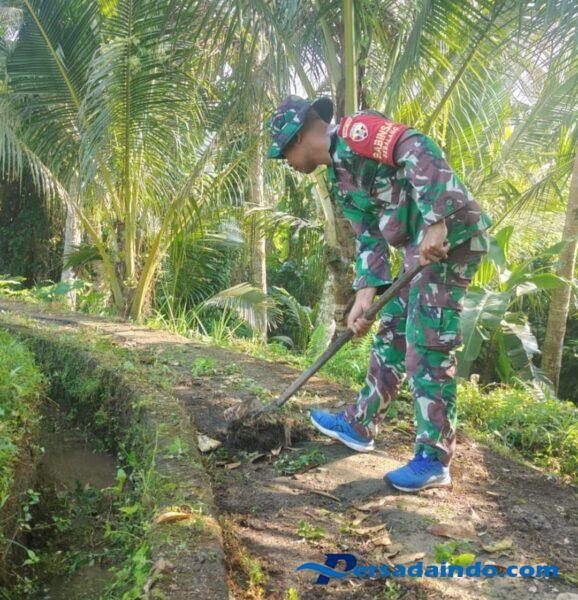 Bangli – Sebagai bentuk nyata dukungan terhadap program pemerintah di bidang ketahanan pangan, Babinsa Kelurahan Bebalang, Koramil 01/Bangli, Kodim 1626/Bangli, Kopda I Nengah Sudarma turut ambil bagian dalam kegiatan gotong royong pembersihan jalan usaha tani dan saluran irigasi di Subak Pecala, Lingkungan Bebalang, Kelurahan Bebalang, Kecamatan/Kabupaten Bangli. Sabtu (21/06/25).