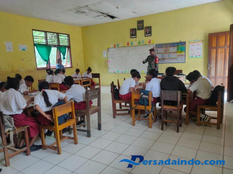 NTT-SIKKA. Babinsa Koramil 1603-04/Kewapante Kodim 1603/Sikka Serda Dedi Setiabudi, memberikan pelajaran matematika dasar dengan menggunakan metode Gasing (Gampang, Asyik, dan Menyenangkan) kepada siswa di SDK Kopong, Desa Kopong, Kec. Kewapante, Kab. Sikka, Rabu(30/04/2025).