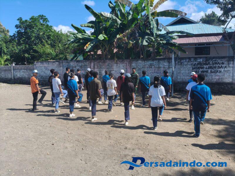 NTT-SIKKA Babinsa Koramil 1603-05/Bola jajaran Kodim 1603/Sikka, Pratu Alfredo Suares dan Pratu Yohanes Alfridus melaksanakan pelatihan calon anggota Pasukan Pengibar Bendera Pusaka (Paskibraka) tingkat Kecamatan Bola, Kabupaten Sikka, dalam rangka menyongsong perayaan Hari Ulang Tahun ke-80 Republik Indonesia, Selasa(05/08/2025).