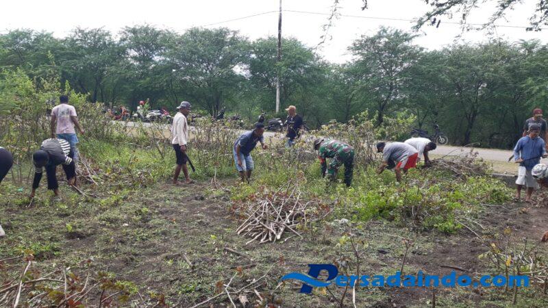 • Babinsa Bersama Warga Karya Bakti Pembersihan Lahan