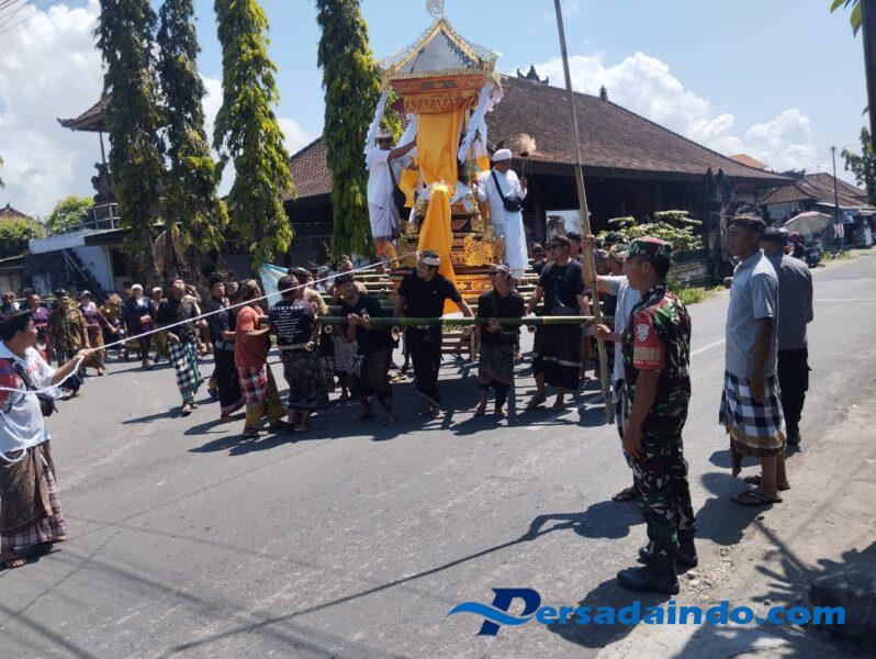 Selama prosesi pengusungan jenazah, Babinsa, Bhabinkamtibmas, dan pecalang bekerja sama melakukan pengawalan, mengatur arus lalu lintas, serta memastikan iring-iringan warga berjalan dengan tertib dan aman. Kehadiran Babinsa juga menjadi bentuk dukungan nyata TNI dalam menjaga ketertiban masyarakat serta menghormati pelaksanaan upacara adat yang merupakan bagian dari kearifan lokal.