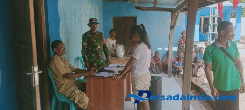 NTT-KUPANG, – Babinsa Koramil 1604-03/Naikliu, Serda Didit Sumanto, menghadiri dan turut serta mengawal kegiatan pembagian bantuan beras Rawan Pangan dari BULOG kepada warga penerima bantuan di Desa Binafun, Kecamatan Amfoang Tengah, Kabupaten Kupang. Kegiatan ini berlangsung di halaman Kantor Desa Binafun dan berjalan dengan tertib serta lancar. Selasa (05/08/2025).