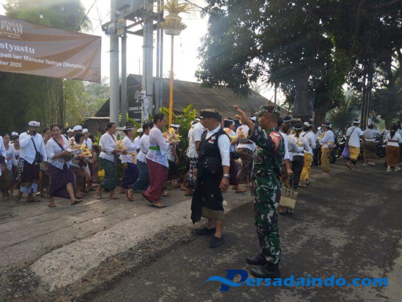 Gianyar – Keramas, Sabtu (18/10/2025) Dalam rangka mendukung kelancaran pelaksanaan kegiatan keagamaan masyarakat, Babinsa Koramil 1616-04/Blahbatuh Sertu Nyoman Lancar bersama Pecalang Desa Adat Keramas melaksanakan pengamanan dan pengaturan arus lalu lintas dalam upacara adat Malegia Manilepati Manusa Yadnya Ngedetin yang dipusatkan di Yayasan Sekah Ganesha, Jalan Selukat, Desa Keramas, Kecamatan Blahbatuh, Kabupaten Gianyar. Kegiatan ini merupakan salah satu tradisi keagamaan umat Hindu yang dilaksanakan secara turun-temurun oleh masyarakat setempat.