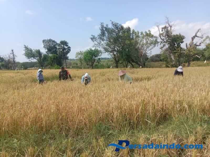Serda Delfi Amalo Babinsa Koramil 01/Ba’a Kodim 1627/Rote Ndao turun sawah bantu petani tanam panen padi,di lokasi persawahan Laloidale Kelurahan Onatali Kecamatan Rote Tengah Kabupaten Rote Ndao.