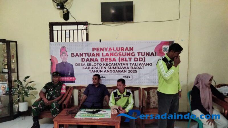 Sumbawa Barat – NTB, Babinsa Desa Seloto, Sertu Wildansyah, dari Koramil 1628-01/Taliwang turut hadir dan mendampingi kegiatan penyaluran Bantuan Langsung Tunai Dana Desa (BLT-DD) yang berlangsung di Kantor Desa Seloto, Kecamatan Taliwang, Kabupaten Sumbawa Barat, Jumat (26/9/2025).